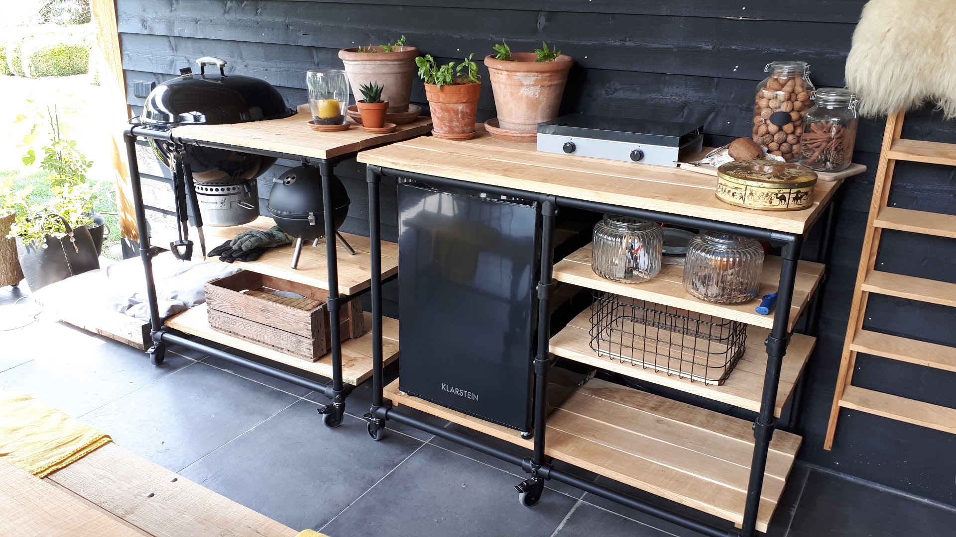 Buitenkeuken of BBQ-meubel met steigerbuis frame