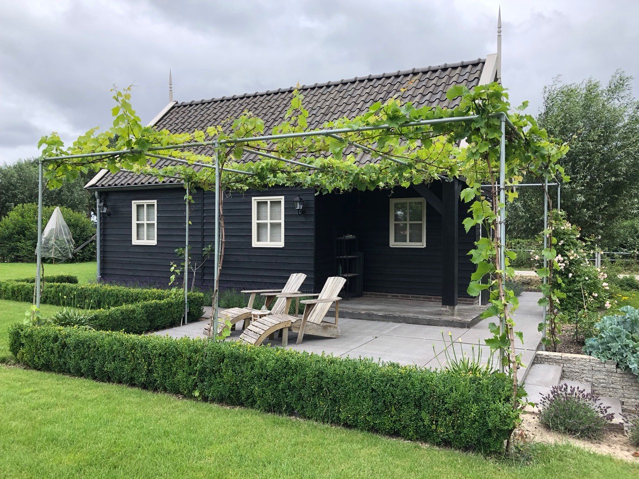 Een moderne pergola van steigerbuis