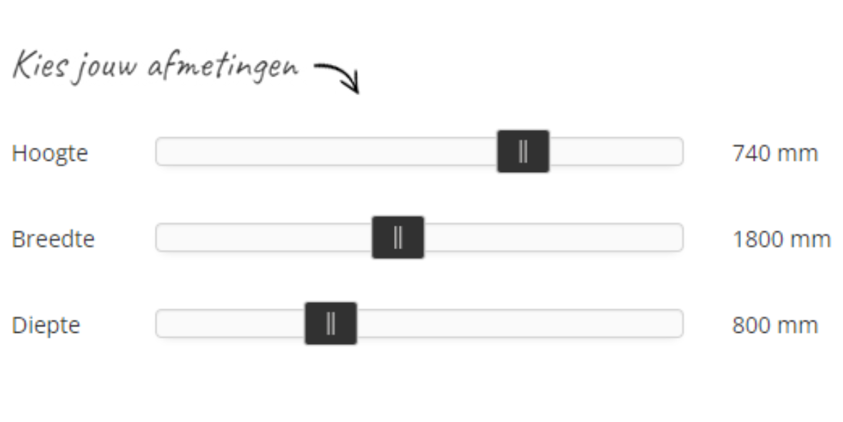 Meer aanpassingen nodig? Geen probleem! Je kunt dit product openen in ons tekenprogramma en daar verder configureren. Kies eerst de gewenste afmetingen. Deze worden overgenomen in de 3D Design Tool.