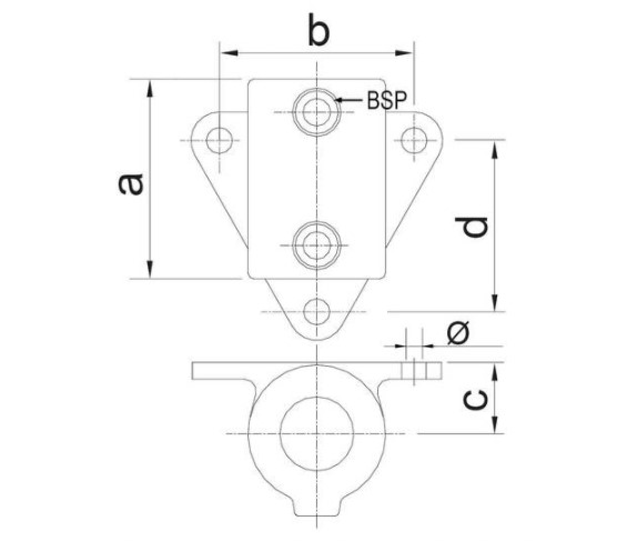 Deze koppeling is ontworpen voor bevestiging van relingwerk en leuningen aan muren, bruggen of trappen. De staander kan niet door de koppeling heen. Diameter 42,4mm.