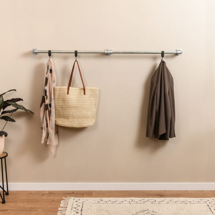 Maak je kapstok compleet met stalen haken of een s-haak met leren lus voor extra ophangmogelijkheden. Salford wordt geleverd als een eenvoudig te monteren DIY-pakket, zodat je snel kunt genieten van een stijlvolle en praktische oplossing.