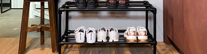 Check hieronder onze collectie industriële steigerbuis schoenenrekken. Allemaal te bestellen als DIY / Doe-het-zelf pakket waarbij je zelf de afmetingen bepaalt! Een steigerbuis schoenenrek is een duurzaam product met veel mogelijkheden qua uitvoering en uitstraling. Kies jij voor stijlvol zwart of stoer staal?