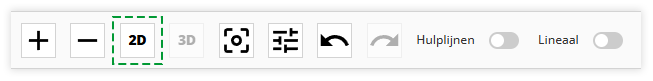 Via onze 2D functie kun je o.a. eenvoudig de hoogte van je constructie aanpassen. Eerst open je deze functie via de 2D knop links onderin je scherm.