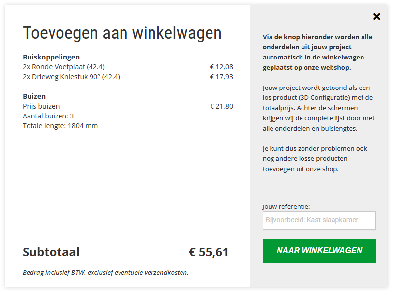 Tip: Geef een referentie mee met jouw project, zeker als je meerdere constructies wilt ontwerpen en bestellen.
