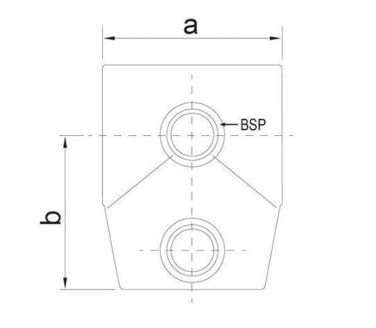 Deze koppeling kan toegepast worden om een knieleuning aan de eindstaander te verbinden, waarbij de knieleuning een hoek tot 11° aankan.